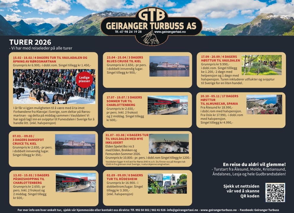 Vi håper disse turene og destinasjonene faller i smak, og at vi ser deg på en av turene!