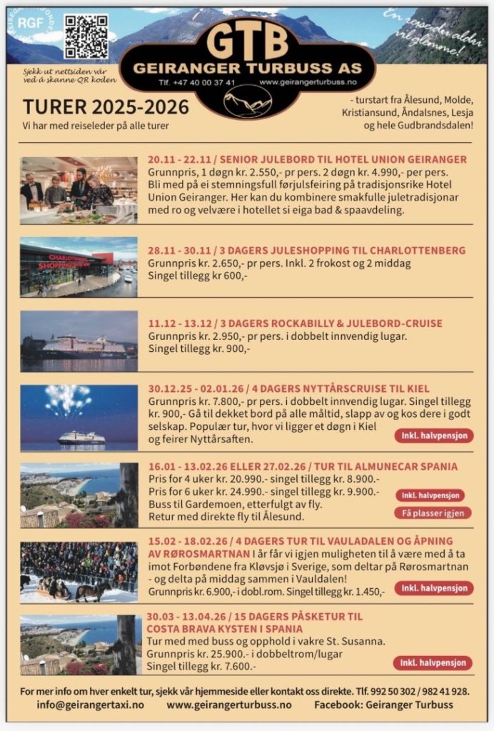 Vi håper disse turene og destinasjonene faller i smak, og at vi ser deg på en av turene!